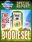 It is always wise to use a "diesel fuel filter/water separator" with any diesel engine. These are available through some auto parts stores or www.westmarine.com. A good model is the Racor 120AS diesel fuel filter/water separator (West Marine # 411348). Biodiesel has a solvent effect on natural rubber hoses and seals. While newer diesel engines have polymer hoses and seals (such as Dupont's "Viton" brand), older engines may need to be outfitted with new hoses and/or seals made of viton. Since most diesel injector pumps don't have rubber parts directly in contact with the fuel, it is usually easy to replace hoses and seals without any major dissasembly. A fuel mixture of 20% biodiesel and 80% petroleum diesel (called "B20") will have no effect on older natural rubber hoses. Biodiesel will "cloud" at temperatures below 55 degrees F (13 degrees C). While this "clouding" is easily reversible by raising the temperature of the fuel again to above 55 degrees, it may cause temporary clogging of your fuel system, thus stopping your engine. Petroleum diesel fuel (Diesel #2) can be used down to -10 degrees F (-24 degrees C). It is advisable to use a blend of at least 50% petroleum diesel with your biodiesel if you are going to be operating in cold weather. You can experiment with different blends of biodiesel and petroleum diesel to determine what works best. Simply mix up batches of fuel with different ratios of petroleum diesel and biodiesel in glass jars and put in a freezer. Use a thermometer to determine the temperature of the fuel. Periodically check on the fuel to determine at what temperature it gets cloudy. This temperature is the "cloud point". It is best to determine this point at home before you head out on the road and get stranded in a snowstorm because your mixture is too rich in biodiesel. Of course, if you are going to be operating during the warm months, or in a warm climate, you can use 100% biodiesel with no problems. This excellent E-Book is available at worldpeaceemerging.com |