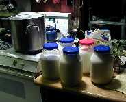 five gallons fresh milk (Be sure that it has no off flavors due to bacteria)APPARATU S:1 cup (250 mL) live cultured yogurt (I prefer Dannon Plain (minimal additives). Get the freshest available from the store.)