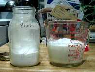 3.   Cover with the sterilized lid.  Let the inoculated milk sit at room temperature overnight (68-72 F, 20-22 C). (No external heat.)  |