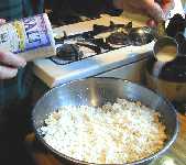 Salt the curds: Sprinkle 1/4 cup salt over curds, working with hands to mix. Pour off accumulated whey. The salt is necessary so that the cheese will not spoil as it cures. I have tried making cheese without salt and it rotted. However, unsalted, uncuredcheese may be frozen until use.  |