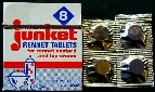 Redco Foods, Inc., P.O. Box 879, Windsor, CT 06095 (formerly theSalada Foods Division). Here is what the back of the package looks like . They can often be found in your supermarket under the category of "puddings." If they are not there, ask the manager if he would please order them. Most managers are willing to do so. If that fails, you can order them from the manufacturer. I recently contacted them via email, and they said to call Redco Direct Market at 1-800-556-6674 to order Rennet tablets. Here is their email response. You may find some cheese makers on the web who prefer liquid rennet,and disparage the use of rennet tablets. I prefer using materials which arereadily available locally. I have not had problems making cheese associated with Junket tablets. Here is a whole page devoted to rennet ...