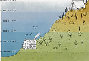 temperatures as altitude increases. Lower boiling temperatures are less