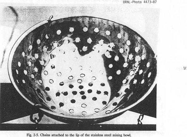 should be drilled in the bottom and up the sides of the mixing bowl; see
