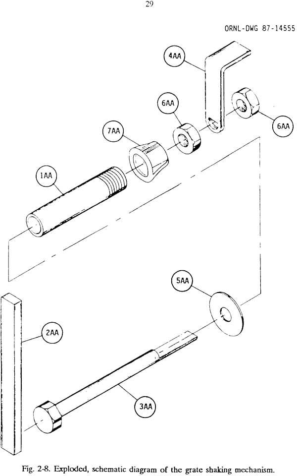 exploded view of the gas generator unit and the fuel hopper; the list of