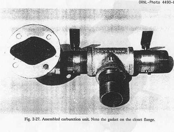views of the carbureting unit; the list of materials is given in Table 2-4 (all figures